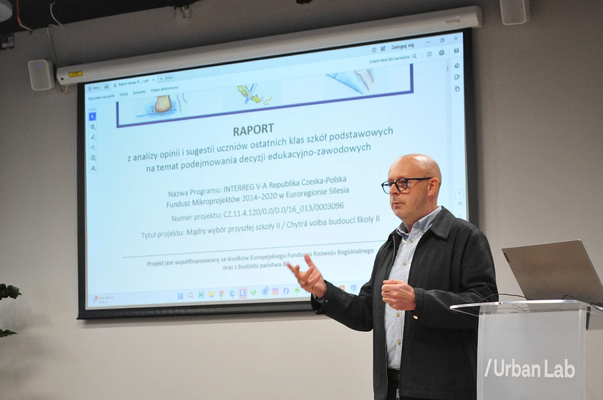 Następnie Ireneusz Burek, prezes Śląskiego Porozumienia Gospodarczego ŚLĄSK.ONLINE, zaprezentował raport dotyczący opinii i sugestii uczniów ostatnich klas szkół podstawowych w Polsce i Czechach na temat wyborów edukacyjno-zawodowych. – Samorządy nie czują się odpowiedzialne za jakość kształcenia – stwierdził na wstępie. Nie odpowiadają one na zaproszenia do debat i nie angażują się w dialog dotyczący planowania działań edukacyjnych. Tymczasem, jak wskazał prelegent, system doradztwa zawodowego w szkołach jest dobrze zaprojektowany na papierze, ale w praktyce działa słabo. Na poszczególnych etapach edukacji przewidziane są działania rozwijające zainteresowania i rozpoznające predyspozycje uczniów, jednak w rzeczywistości brakuje skutecznej realizacji tych założeń. Doradcy zawodowi powinni obserwować uczniów i pomagać im w wyborze kierunków kształcenia poprzez kontakt z firmami czy zajęcia praktyczne, ale często nie mają ku temu odpowiednich warunków, a w liceach przewidziane jest jedynie 10 godzin doradztwa zawodowego na cały cykl nauki. Ireneusz Burek przytoczył przykłady pokazujące, że zajęcia z doradztwa często ograniczają się do jednorazowych testów bez omówienia wyników, a wielu uczniów deklaruje, że przez całą podstawówkę ich potrzeby diagnozowano zaledwie raz lub dwa razy. – Mamy tych 10 godzin, ale jak my je wykorzystujemy – stwierdził.