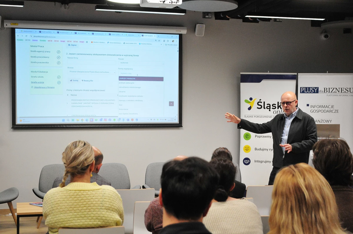 A jakie są opinie dotyczące doradztwa zawodowego? – Rodzic jest głównym czynnikiem, który wpływa na decyzję, jaką szkołę uczeń wybierze. A jednocześnie nie ma on pojęcia, co w tych szkołach jest – zwrócił uwagę Ireneusz Burek. Problemem jest też przymuszanie do brania udziału w dniach otwartych wszystkich szkół, a także słabe informowanie o szkołach ponadpodstawowych i zbyt późne przekazywanie ofert. Prelegent zaprezentował narzędzie, które mogłoby pomóc w tej kwestii, czyli platformę PLUSYdlaBIZNESU. W poszczególnych modułach mogłyby być zawarte pomocne informacje i kontakty dla uczniów w kontekście edukacji, staży czy pracy, ale także dla szkół chcących nawiązać współpracą z biznesem i odwrotnie. – Samorząd powinien powiedzieć: "to jest obowiązkowe narzędzie, które przygotował wam biznes, musicie się zaangażować, bo robicie to dla waszych dzieci, nie dla ocen". Ocena nie jest miarodajna, to jest to, jakich kompetencji praktycznych zdąży nabyć młody człowiek i uświadomi sobie, czego chce, opuszczając szkołę. W Karwinie 70% uczniów, którzy opuszczają szkołę podstawową, nie wie, co będzie robiło dalej – podkreślił Ireneusz Burek. Kolejne kwestie to wysyłanie uczniów na praktyki do niewłaściwych firm – odpowiednie pokierowanie nimi mogłoby ich zachęcić do pozostania w Raciborzu.