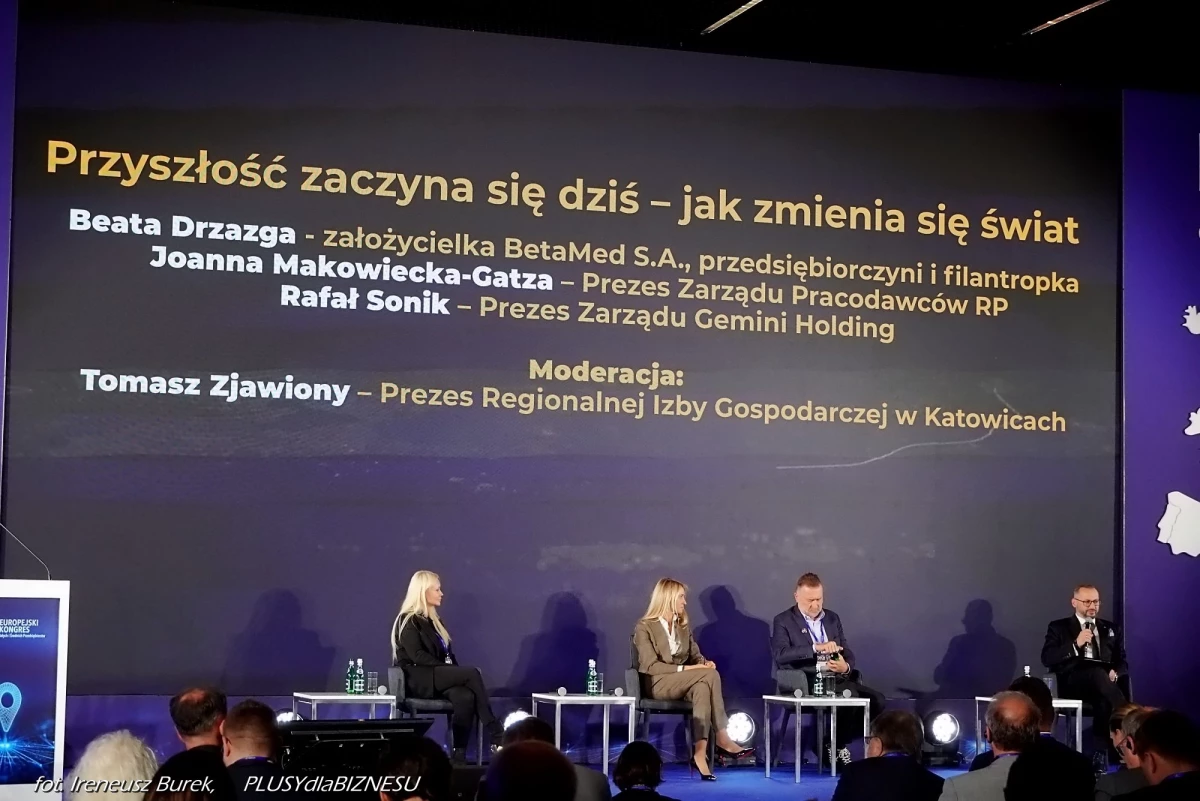 W ramach otwarcia EKMŚP odbył się panel „Przyszłość zaczyna się dziś – jak zmienia się świat” z udziałem Beaty Drzazgi (BetaMed S.A.), Joanny Makowieckiej-Gatzy (Pracodawcy RP) i Rafała Sonika (Gemini Holding) moderowany przez Tomasza Zjawionego. Dyskutowano o wyzwaniach dla biznesu – od obciążeń administracyjnych i zmienności prawa po konieczność inwestowania w nowe technologie – ale także o potencjale gospodarczym Śląska i lepszym dialogu rządu z przedsiębiorcami. – Ja patrzę na Śląsk przede wszystkim z podziwem. To, czego dokonano na Śląsku, jest cudem gospodarczym, który wziął się z pracy. To na Śląsku zainwestowałem najwięcej, a nie w Warszawie czy Krakowie – powiedział Rafał Sonik.