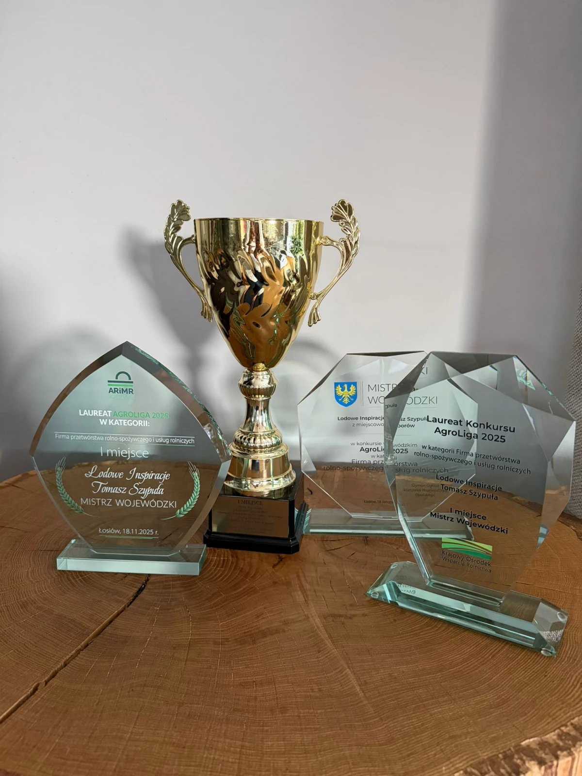 1. miejsce w Gelato Festival Poland za smak „Hyćka” (2023) oraz „Cud, miód i orzeszki” (2020).