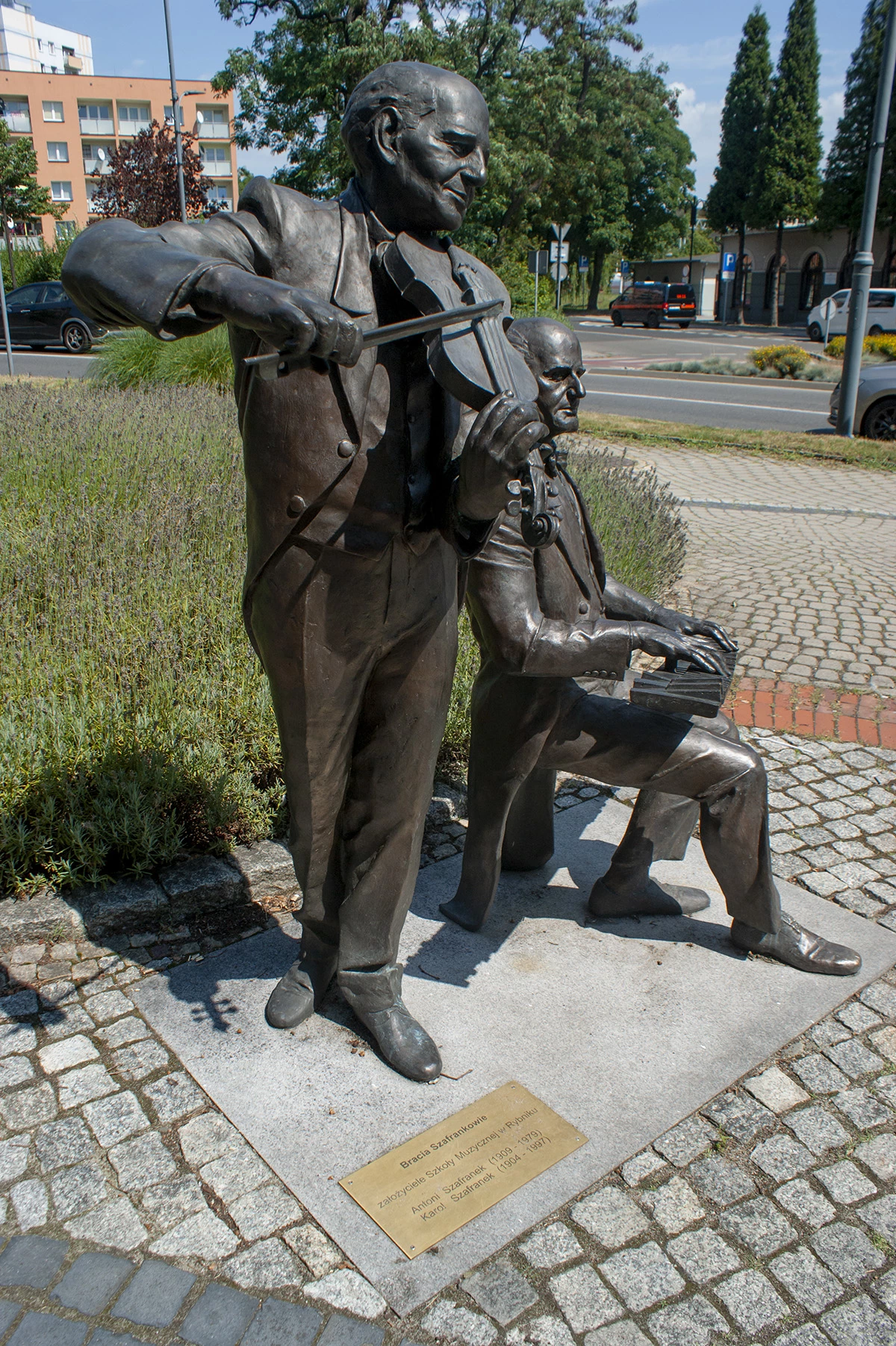 W Rybniku na skwerze u zbiegu ulic Józefa Piłsudskiego i Tadeusza Kościuszki, naprzeciwko dworca kolejowego, stoi rzeźba braci Karola i Antoniego Szafranków - wybitnych muzyków i pedagogów.