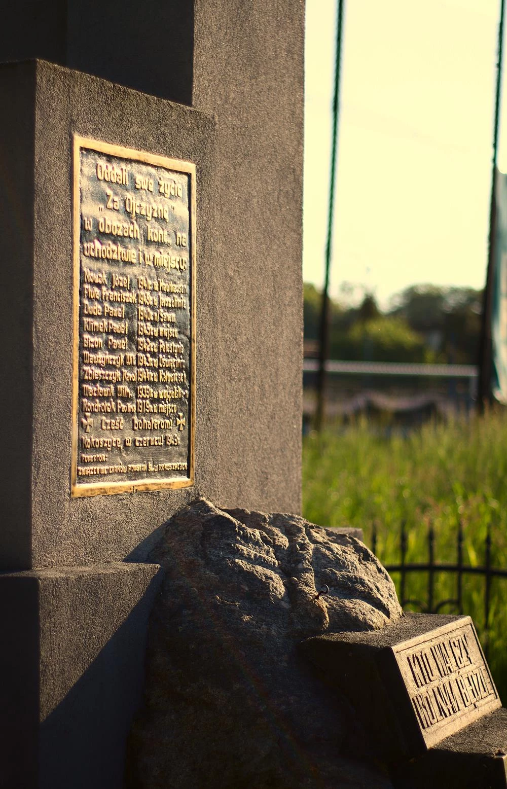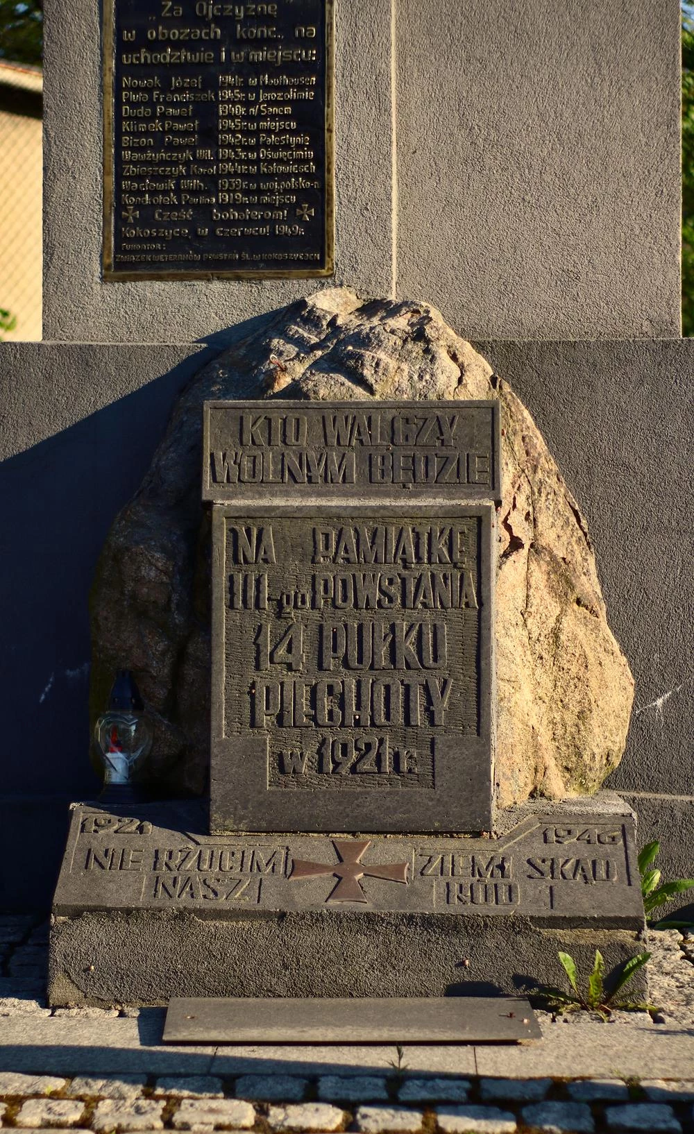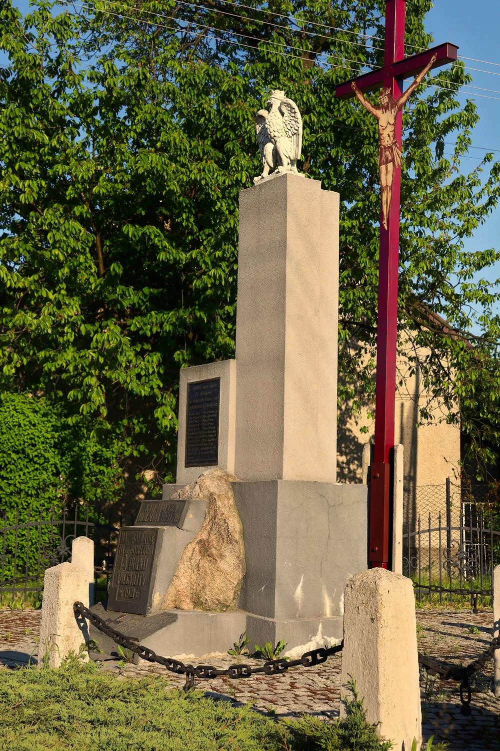 W 1939 r. pomnik został zniszczony przez Niemców, a krzyż przeniesiony. Po zakończeniu wojny wybudowano nowy pomnik i krzyż wrócił na swoje miejsce. W 1998 r. powstał nowy krzyż, który umieszczono w miejscu dotychczasowego. Został on poświęcony przez proboszcza ks. Grabowskiego.