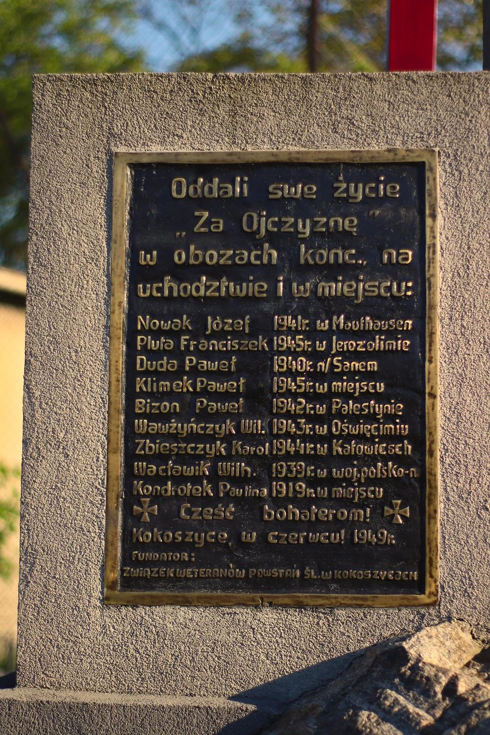 W Kokoszycach przy ul. Pszowskiej znajduje się pomnik powstańców śląskich, a tuż za nim - krzyż.