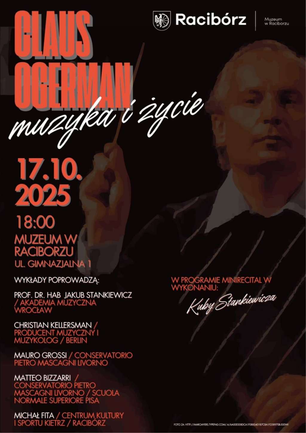 17 października, o godz. 18:00 Muzeum w Raciborzu (ul. Gimnazjalna 1) zaprasza na wydarzenie „Claus Ogerman. Muzyka i życie”. Inicjatywa poświęcona jest Clausowi Ogermanowi, słynnemu kompozytorowi i aranżerowi urodzonemu w Raciborzu. Program obejmuje cykl wykładów oraz minirecital w wykonaniu Kuby Stankiewicza.
