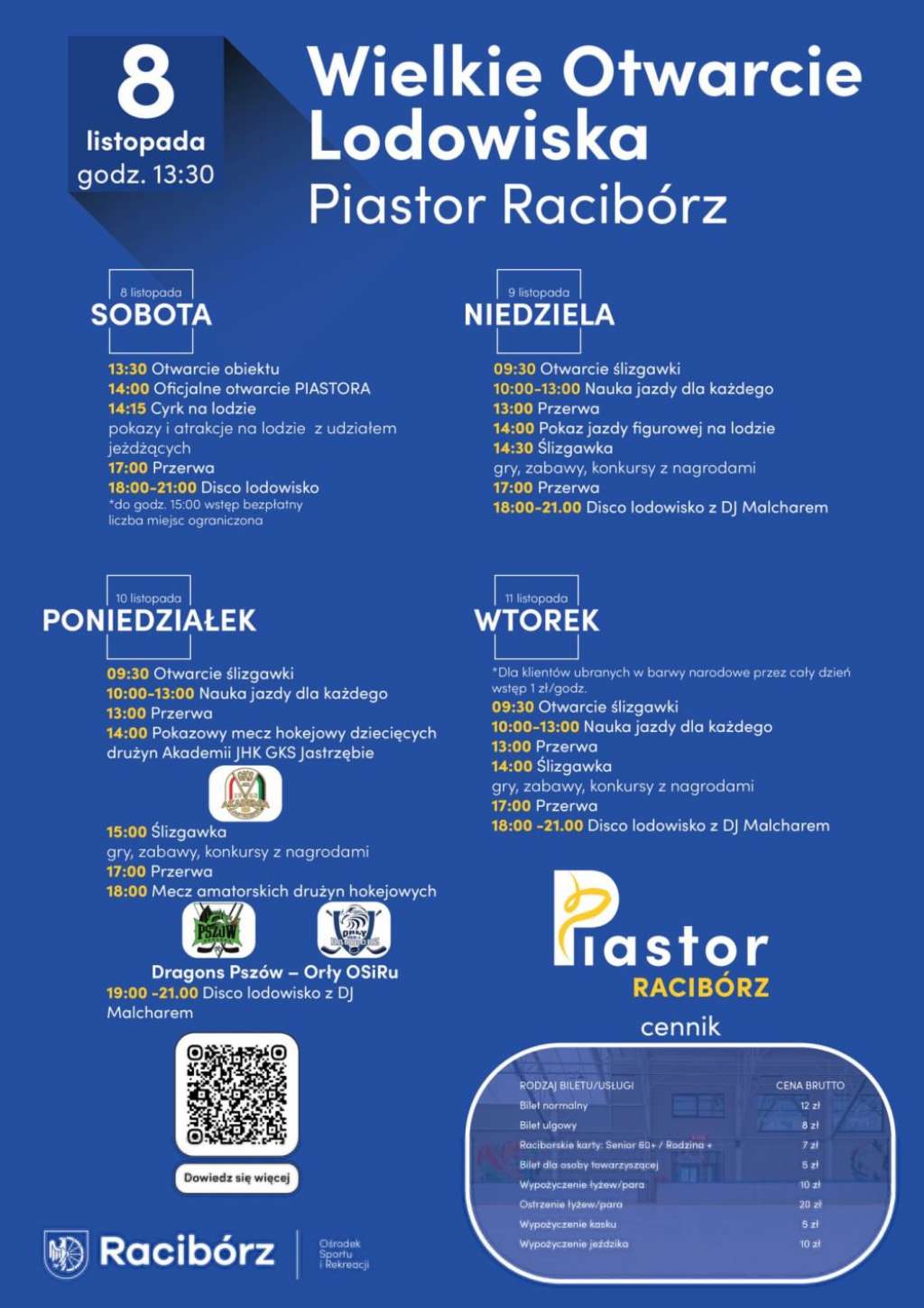 8 listopada w Raciborzu nastąpi otwarcie nowego, całorocznego obiektu sportowego o nazwie Piastor. Działalność obiektu zostanie zainaugurowana uruchomieniem lodowiska. Z tej okazji zaplanowano czterodniowy program wydarzeń.