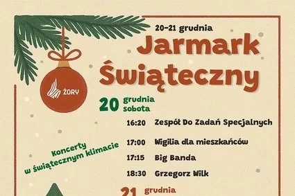 20–21 grudnia na żorskim Rynku odbędzie się tegoroczny Jarmark Świąteczny, który jak co roku połączy muzykę, tradycję i wspólne świętowanie. W dużym, ogrzewanym namiocie już pierwszego dnia na mieszkańców czeka występ Zespołu do Zadań Specjalnych, a następnie wyjątkowa „Wigilia dla Mieszkańców”. To piękna lokalna tradycja, która gromadzi żorzan przy wspólnym stole. Serwowane będą tradycyjne potrawy przygotowane przez ZAZ „Wspólna Pasja”, m.in. moczka, barszcz oraz krokiety z kapustą i grzybami. Świąteczną atmosferę dopełnią koncerty Big Bandy i Grzegorza Wilka, a harcerze przyniosą symboliczne Betlejemskie Światło Pokoju.