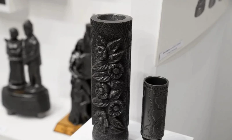 Na wystawie można zobaczyć rzeźby i fotografie rzeźb wykonanych z węgla i grafitu, co odwołuje się do tradycji górniczej regionu i jej współczesnych interpretacji jako formy artystycznej. Prezentowane są również materiały dokumentujące twórców i proces tworzenia takich dzieł.