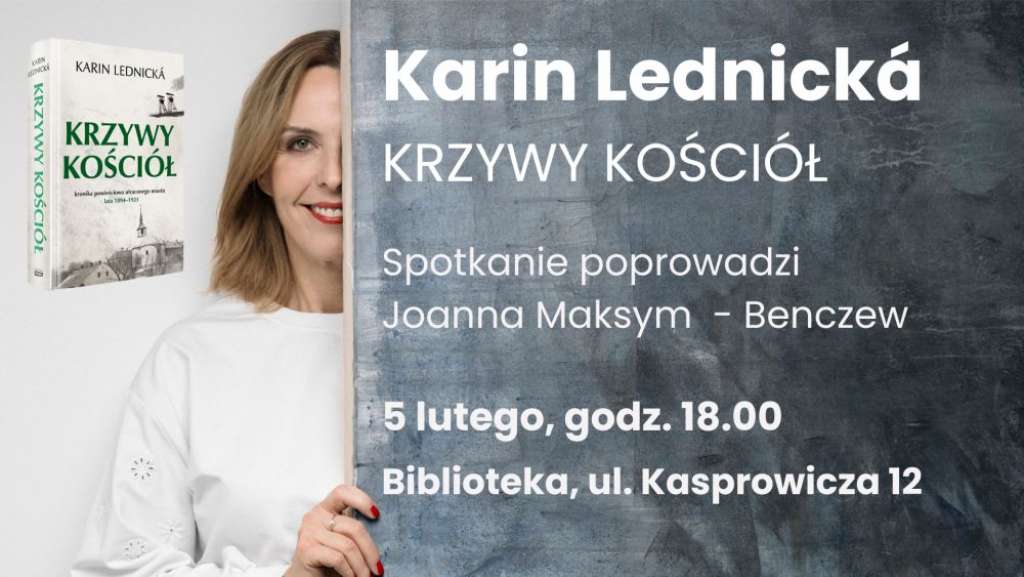 Biblioteka w Raciborzu zaprasza na spotkanie z Karin Lednicką, autorką literackiego fenomenu „Krzywy kościół”, które odbędzie się 5 lutego o godz. 18:00 przy ul. Kasprowicza 12. Czeska pisarka, której trylogia sprzedała się w nakładzie niemal pół miliona egzemplarzy, przybliży czytelnikom historię polsko-czeskiego pogranicza śląskiego zapisaną na kartach kroniki powieściowej utraconego miasta. Spotkanie, które poprowadzi dr Joanna Maksym-Benczew, będzie okazją do rozmowy o losach bohaterów rzuconych w wir wielkiej historii zapoczątkowanej tragicznym wybuchem w karwińskiej kopalni w 1894 r. Karin Lednická, wielokrotnie nagradzana za Książkę Roku oraz odznaczona przez prezydenta Republiki Czeskiej Medalem za Zasługi, w swojej twórczości kreśli obraz walki o przetrwanie i poszukiwania szczęścia w świecie targanym konfliktami narodowościowymi i społecznymi.